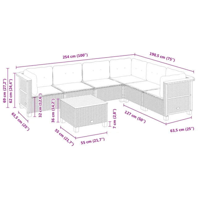 Ta vrtna sedežna garnitura je popoln dodatek za vaše dvorišče, teraso ali verando, saj zagotavlja udoben in vabljiv prostor za klepet z družino in prijatelji ali preprosto za sprostitev in uživanje na prostem.