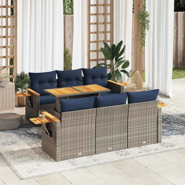 vidaXL Vrtna sedežna garnitura 7-delna z blazinami siv poli ratan