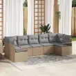 vidaXL Vrtna sedežna garnitura 7 pcs Bež Poly ratan