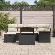 vidaXL Vrtna sedežna garnitura 7 pcs Črna poli ratan