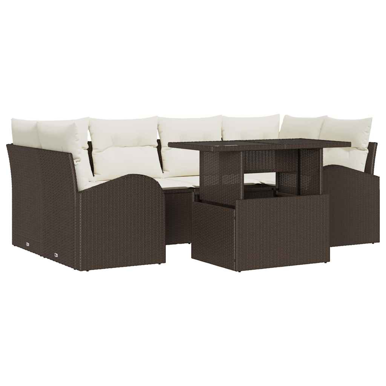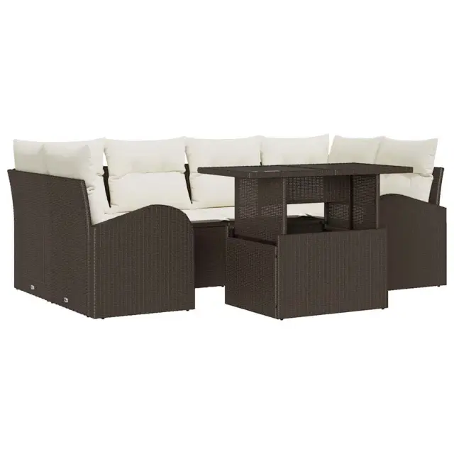 vidaXL Vrtna sedežna garnitura 7 pcs Rjava 100 x 55 x 73 cm Poly ratan