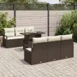 vidaXL Vrtna sedežna garnitura 7 pcs Rjava in krem poli ratan