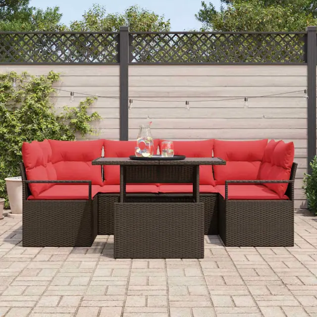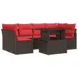 vidaXL Vrtna sedežna garnitura 7 pcs Rjava in rdeča poli ratan