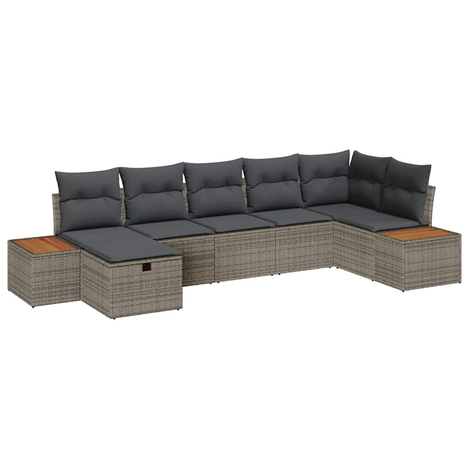 Ta vrtna sedežna garnitura je stilski dodatek k vsakemu zunanjemu sedenju, saj združuje videz in udobje. S svojo elegantno, modularno zasnovo iz poli ratana, ki se prilega različnim prostorom – od balkonov do teras, je super vsestranska. Namenjena je vsem, ki imajo radi moderen zunanji videz in uživajo v družbi prijateljev ali se preprosto sproščajo na svežem zraku.