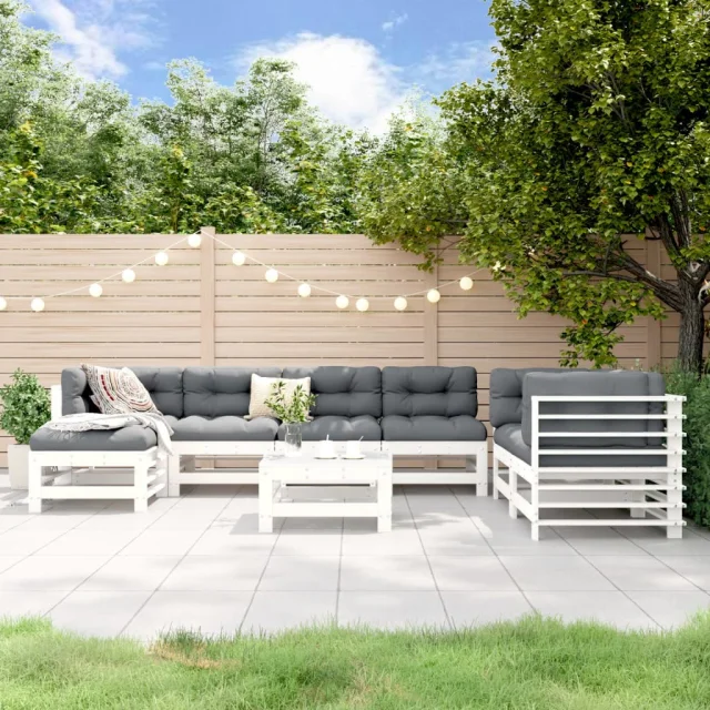 vidaXL Vrtna sedežna garnitura 8-delna bela trdna borovina