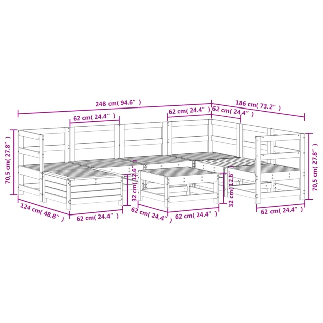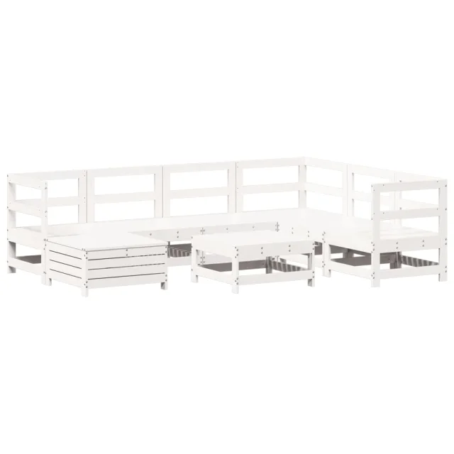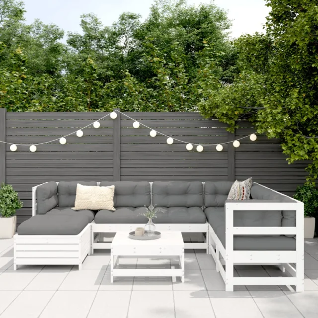 vidaXL Vrtna sedežna garnitura 8-delna bela trdna borovina
