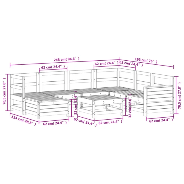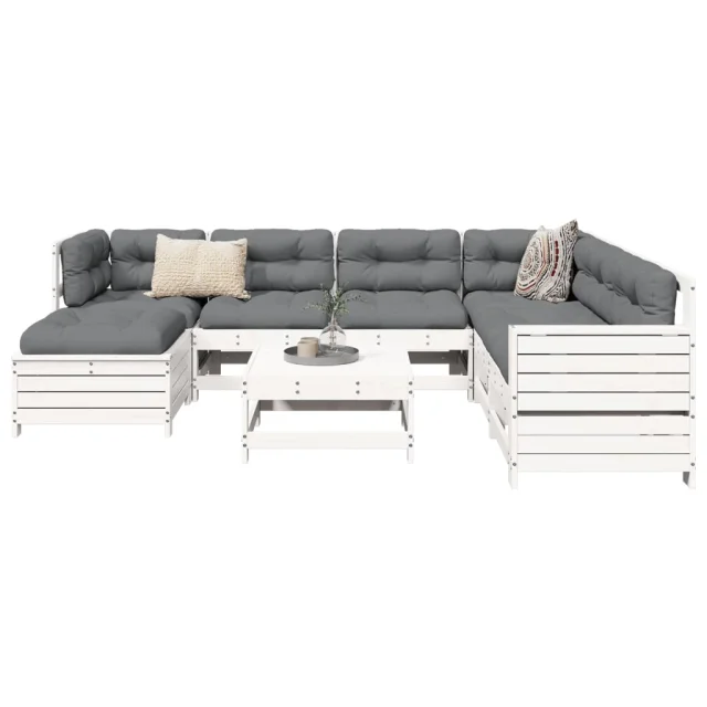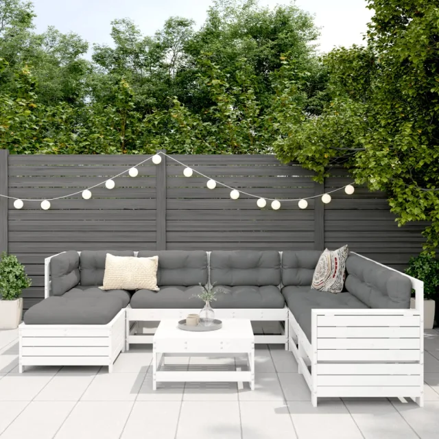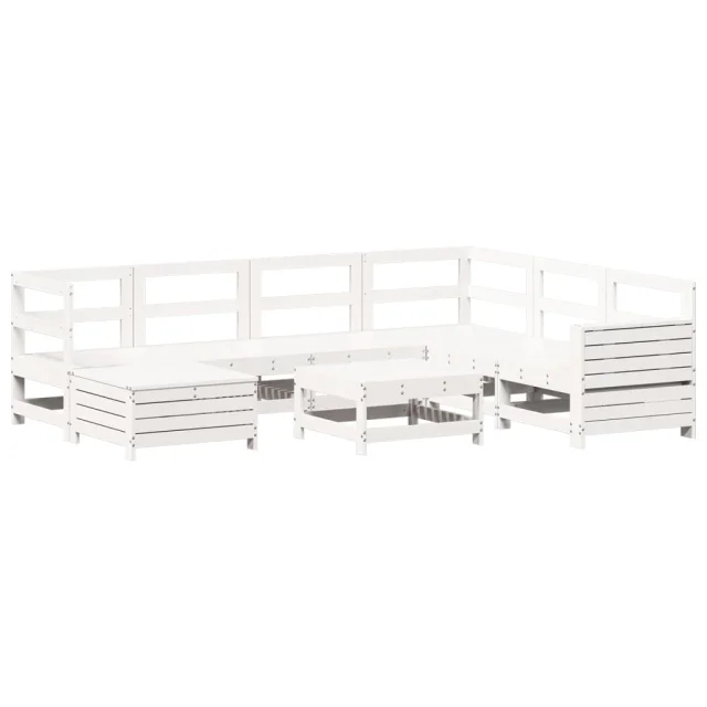 vidaXL Vrtna sedežna garnitura 8-delna bela trdna borovina