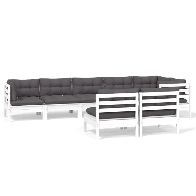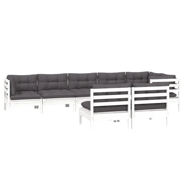 vidaXL Vrtna sedežna garnitura 8-delna z blazinami bela borovina