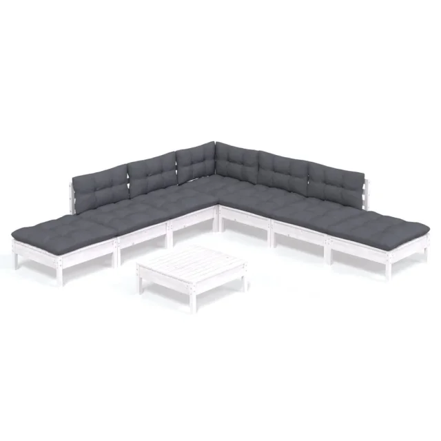 vidaXL Vrtna sedežna garnitura 8-delna z blazinami bela borovina