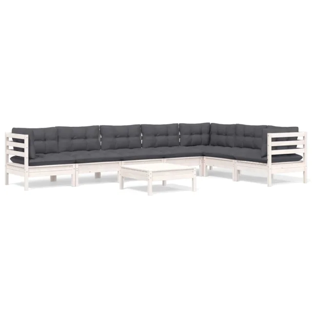 vidaXL Vrtna sedežna garnitura 8-delna z blazinami bela borovina