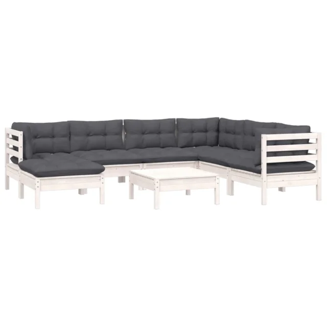 vidaXL Vrtna sedežna garnitura 8-delna z blazinami bela trdna borovina