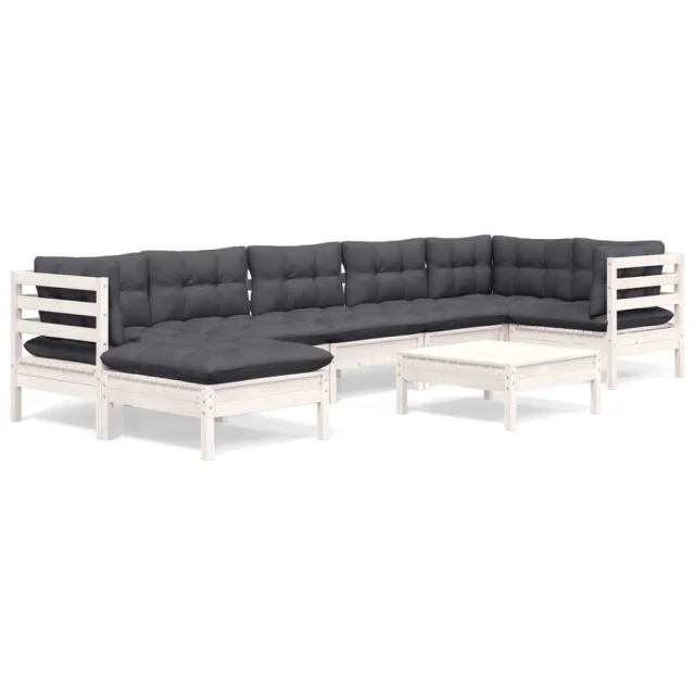 vidaXL Vrtna sedežna garnitura 8-delna z blazinami bela trdna borovina