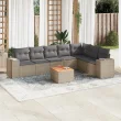 vidaXL Vrtna sedežna garnitura 8-delna z blazinami bež poli ratan