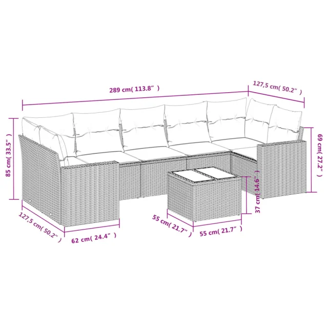 vidaXL Vrtna sedežna garnitura 8-delna z blazinami bež poli ratan