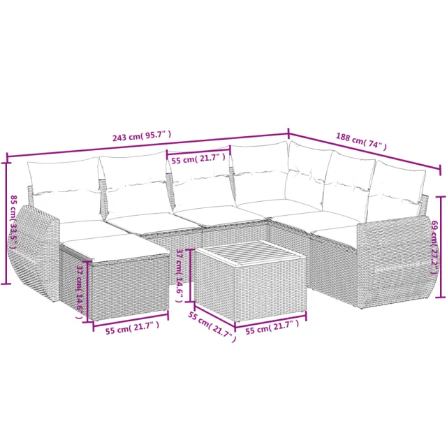 vidaXL Vrtna sedežna garnitura 8-delna z blazinami bež poli ratan