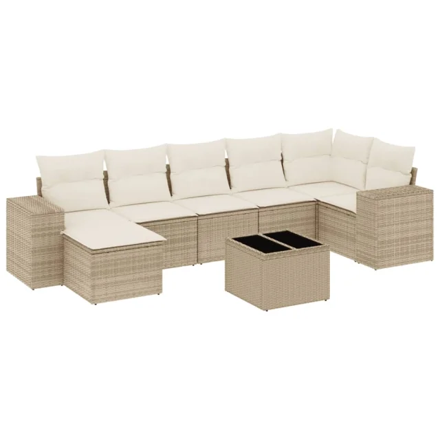vidaXL Vrtna sedežna garnitura 8-delna z blazinami bež poli ratan