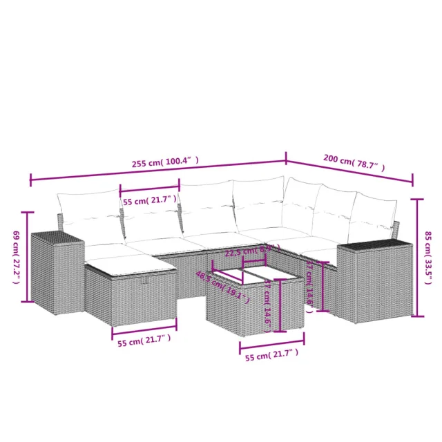 Ta vrtna sedežna garnitura je popoln dodatek za vaše dvorišče, teraso ali verando, saj zagotavlja udoben in vabljiv prostor za klepet z družino in prijatelji ali preprosto za sprostitev in uživanje na prostem.