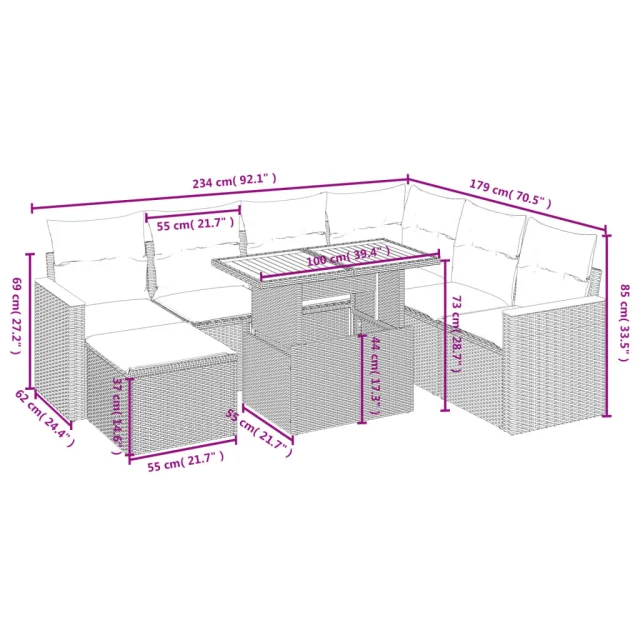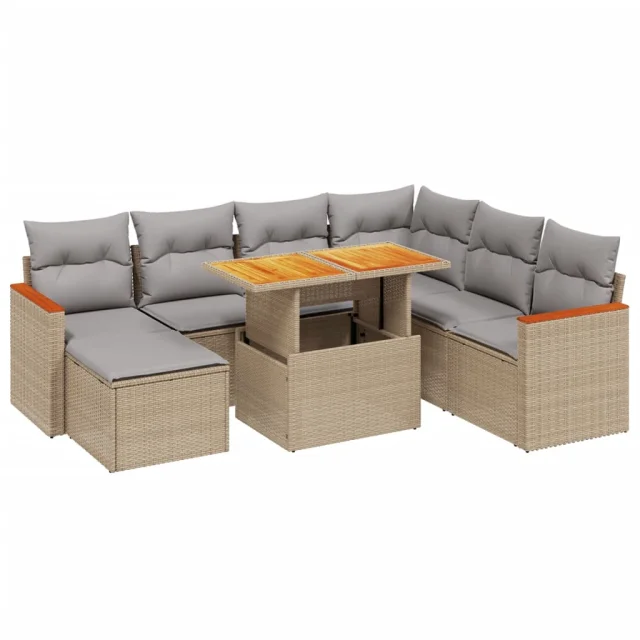 vidaXL Vrtna sedežna garnitura 8-delna z blazinami bež poli ratan
