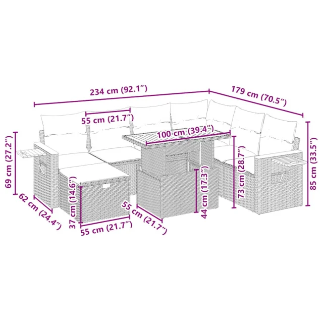Ta vrtna sedežna garnitura je popoln dodatek za vaše dvorišče, teraso ali verando, saj zagotavlja udoben in vabljiv prostor za klepet z družino in prijatelji ali preprosto za sprostitev in uživanje na prostem.