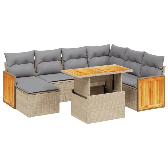 vidaXL Vrtna sedežna garnitura 8-delna z blazinami bež poli ratan