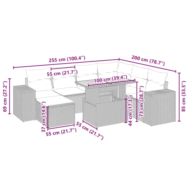 vidaXL Vrtna sedežna garnitura 8-delna z blazinami bež poli ratan