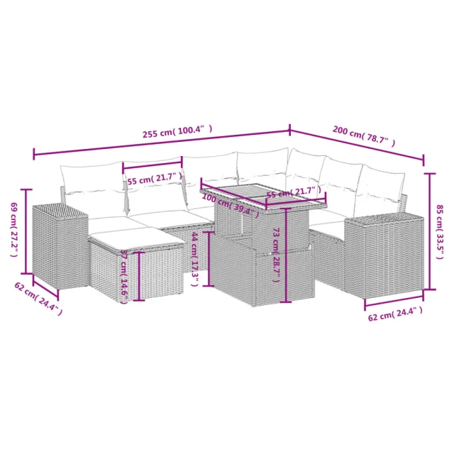 vidaXL Vrtna sedežna garnitura 8-delna z blazinami bež poli ratan