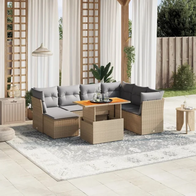 vidaXL Vrtna sedežna garnitura 8-delna z blazinami bež poli ratan