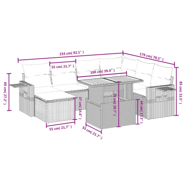 vidaXL Vrtna sedežna garnitura 8-delna z blazinami bež poli ratan