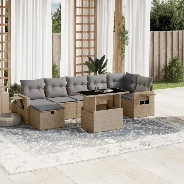 vidaXL Vrtna sedežna garnitura 8-delna z blazinami bež poli ratan
