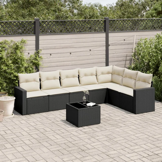 vidaXL Vrtna sedežna garnitura 8-delna z blazinami črn poli ratan