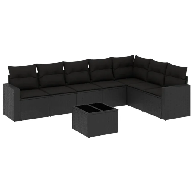 vidaXL Vrtna sedežna garnitura 8-delna z blazinami črn poli ratan