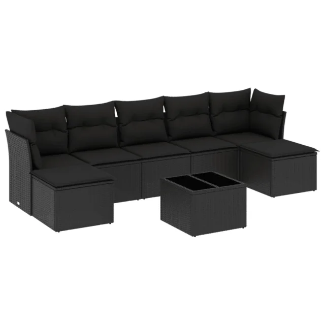 vidaXL Vrtna sedežna garnitura 8-delna z blazinami črn poli ratan