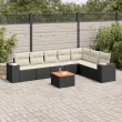 vidaXL Vrtna sedežna garnitura 8-delna z blazinami črn poli ratan