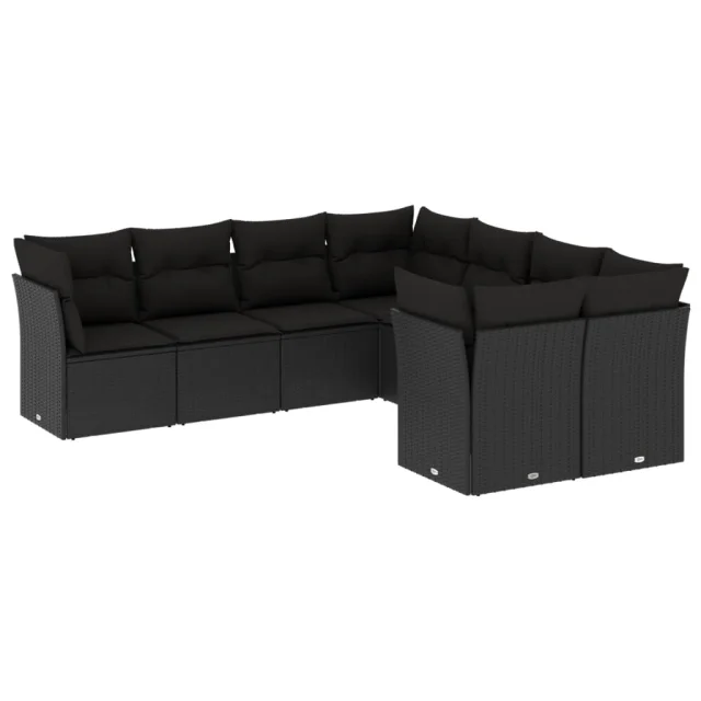 vidaXL Vrtna sedežna garnitura 8-delna z blazinami črn poli ratan