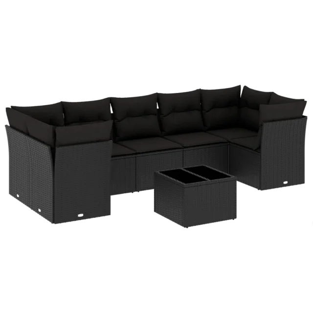 vidaXL Vrtna sedežna garnitura 8-delna z blazinami črn poli ratan