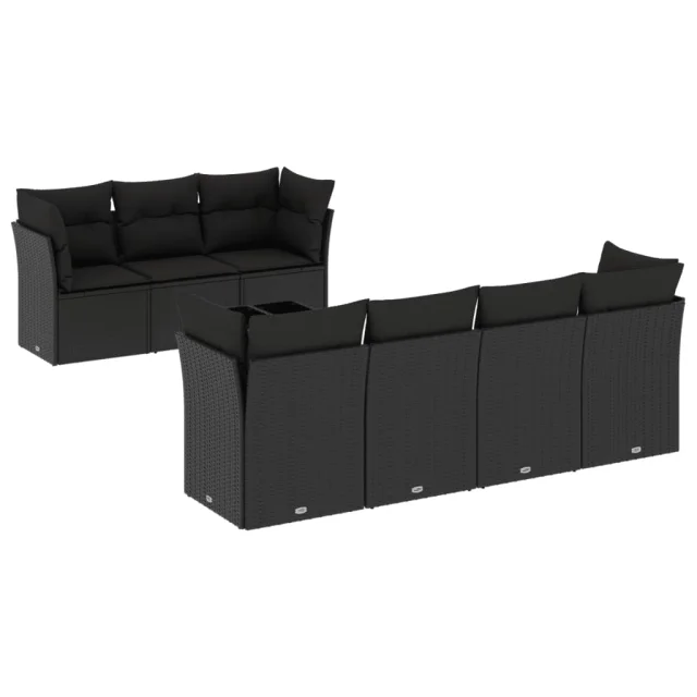 vidaXL Vrtna sedežna garnitura 8-delna z blazinami črn poli ratan