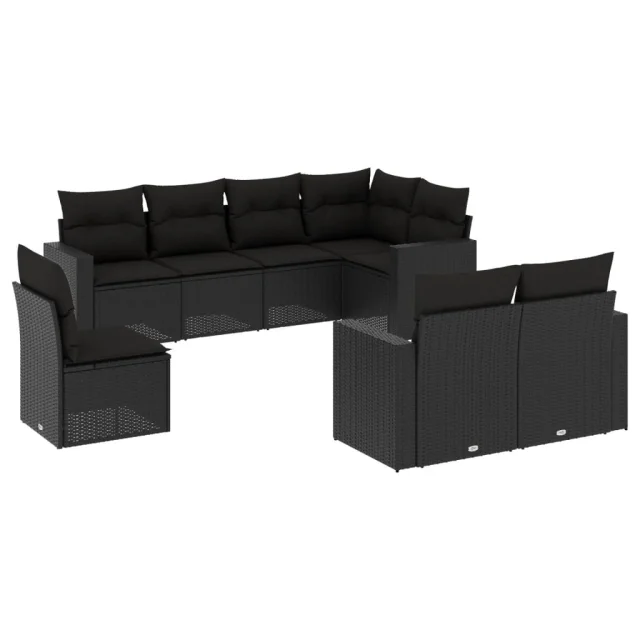 vidaXL Vrtna sedežna garnitura 8-delna z blazinami črn poli ratan