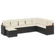 vidaXL Vrtna sedežna garnitura 8-delna z blazinami črn poli ratan