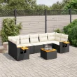 vidaXL Vrtna sedežna garnitura 8-delna z blazinami črn poli ratan