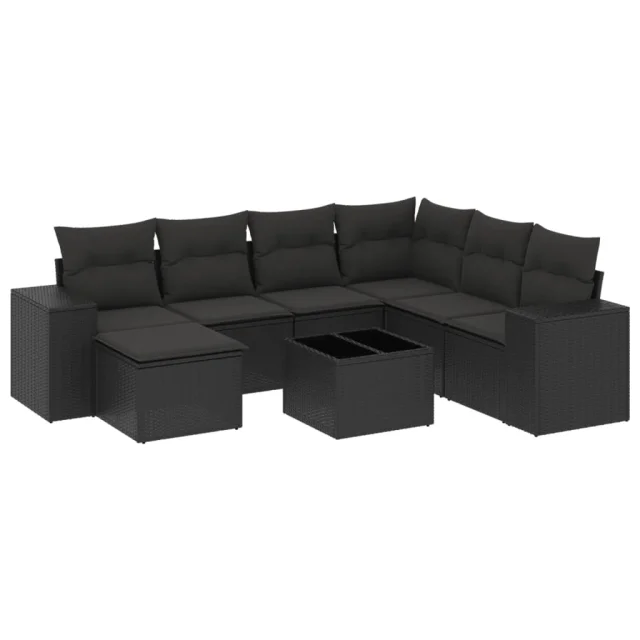 vidaXL Vrtna sedežna garnitura 8-delna z blazinami črn poli ratan