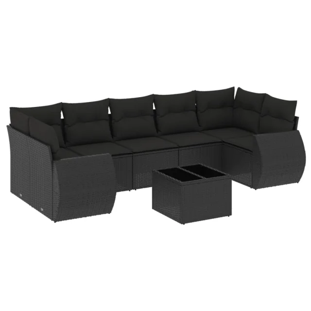 vidaXL Vrtna sedežna garnitura 8-delna z blazinami črn poli ratan