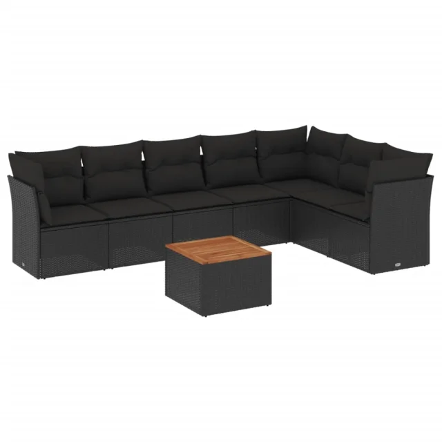 vidaXL Vrtna sedežna garnitura 8-delna z blazinami črn poli ratan