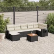vidaXL Vrtna sedežna garnitura 8-delna z blazinami črn poli ratan