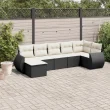 vidaXL Vrtna sedežna garnitura 8-delna z blazinami črn poli ratan