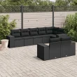 vidaXL Vrtna sedežna garnitura 8-delna z blazinami črn poli ratan