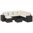 vidaXL Vrtna sedežna garnitura 8-delna z blazinami črn poli ratan