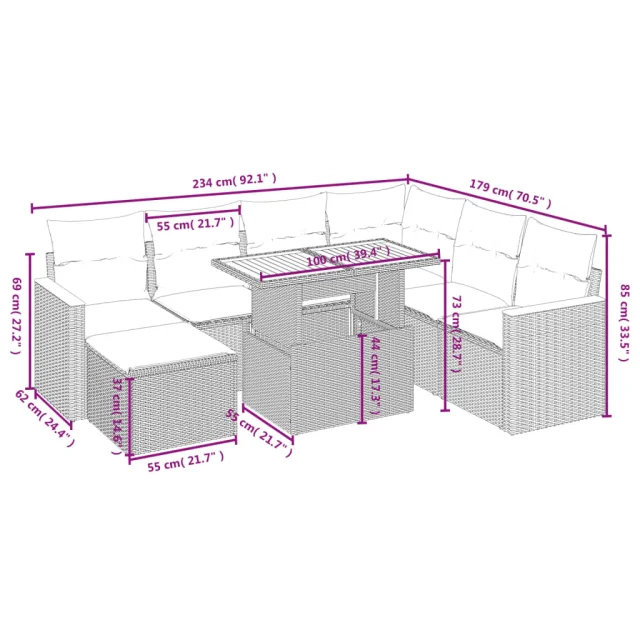 vidaXL Vrtna sedežna garnitura 8-delna z blazinami črn poli ratan