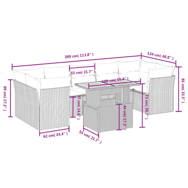 vidaXL Vrtna sedežna garnitura 8-delna z blazinami črn poli ratan