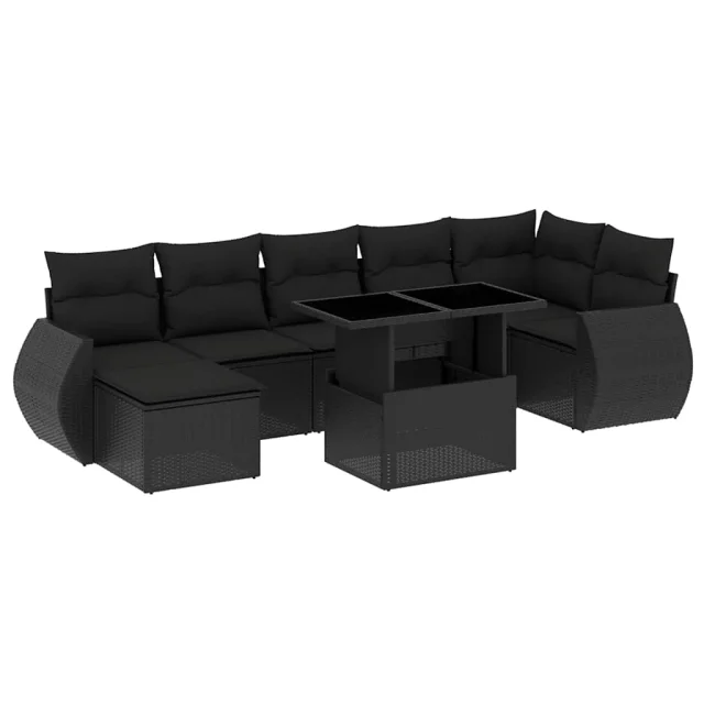 vidaXL Vrtna sedežna garnitura 8-delna z blazinami črn poli ratan