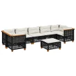 vidaXL Vrtna sedežna garnitura 8-delna z blazinami črn poli ratan